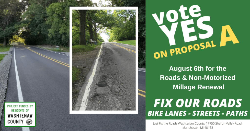Just Fix the Roads Washtenaw County is a ballot question committee that supports the approval of the ballot proposal. Properly registered with the County of Washtenaw under Michigan statutes and rules. Committee ID# B-2016-004.